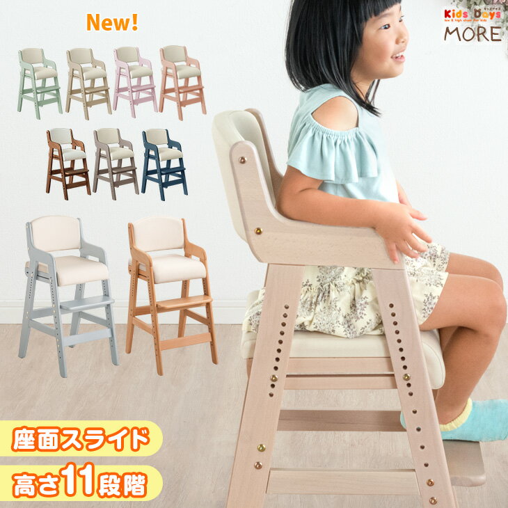 高さ調節が細かく設定でき、子どもの成長に合わせて使いやすい椅子です。座面はスライド式で正しい姿勢をサポート。また、食べこぼしや水分に強く撥水性のあるPVCレザーを使用しています。