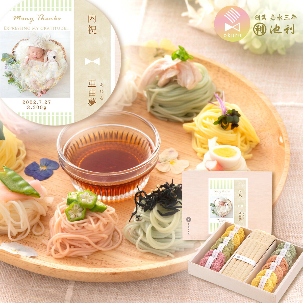 - 「のし」に写真や生年月日、体重なども載せてもらえ、遠方の親戚にも喜ばれた