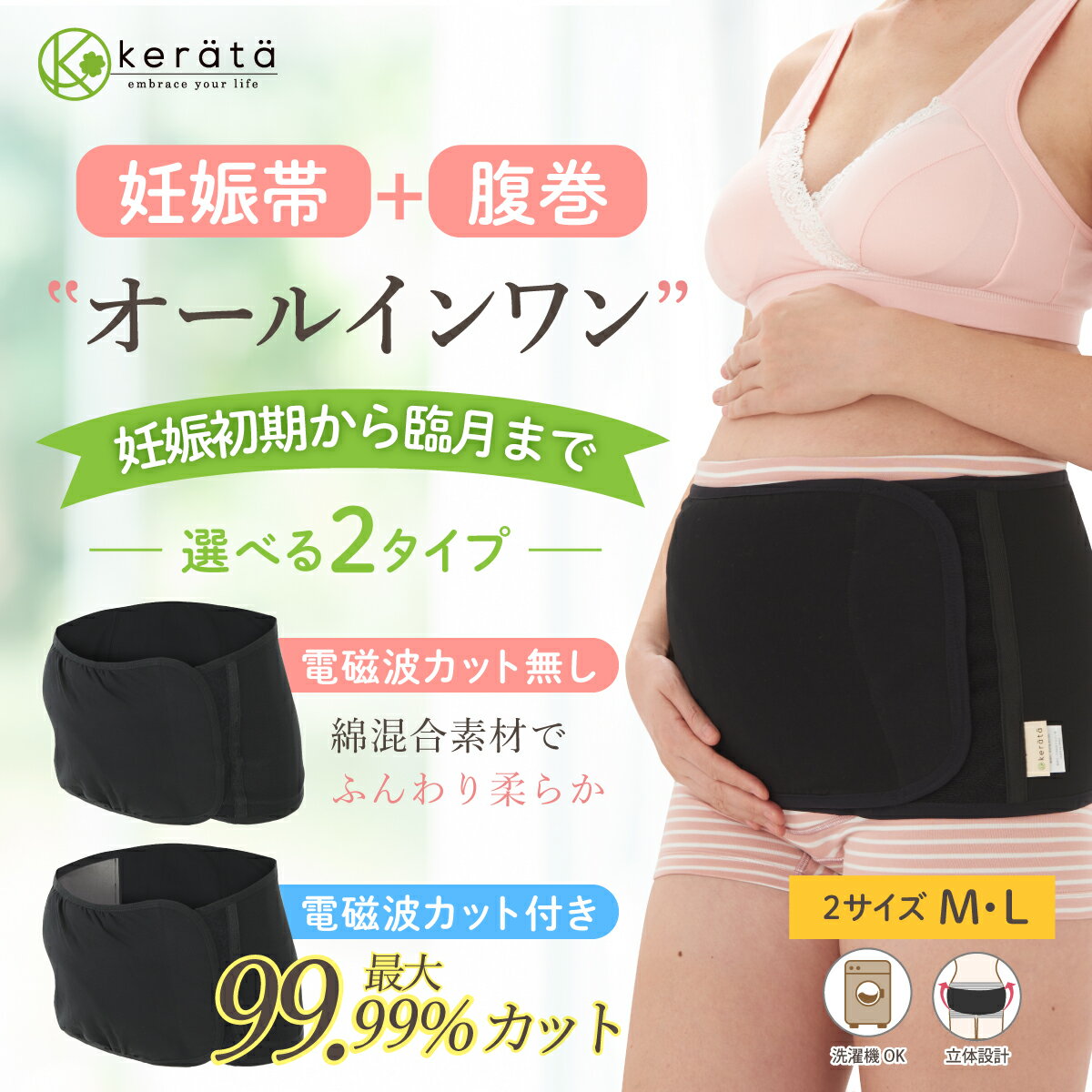最大99.99%の電磁波カット付きとカット無しの2タイプから選べる、腹巻と腹帯がセットになったオールインワン。